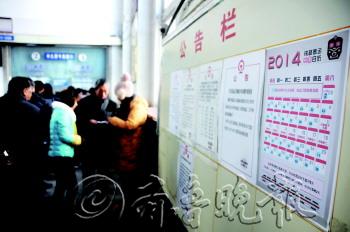 11日,德州火车站售票厅内张贴出2014年春运购票时间图表,春运期间购票开始时间一目了然,为旅客提供方便。