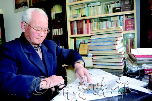 80岁高龄的刘继唐坐在桌前剪报,桌子上放着厚厚的档案本。曾是一位档案管理者的他,也是齐鲁晚报的忠实粉丝。退休后,他运用自己专业上的知识,将齐鲁晚报上的信息分为13类且独立成册。每天阅读晚报后,将有用的信息归类入册,形成“档案”,至今已有20载。