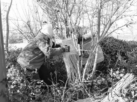 随着冬季气温逐渐下降,全市的花草树木进入冬季养护阶段,为提高绿化苗木的抗寒能力,避免因霜冻和生理干旱等原因引起的苗木死亡,市城管执法局园林处自11月中旬开始,着手对城区树木进行全面冬季防寒养护工作。 本报通讯员 孙建琨 窦玉芹 本报记者 李运恒 摄影报道