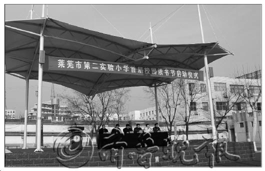 10日下午,莱芜市第二实验小学首届校园读书节开幕。据介绍,该校将在今年12月的读书节期间,开展读书节徽标征集比赛、书签制作比赛、10元书资共享计划、故事演讲比赛、书香教师大比拼、书香家庭评选等10余项活动。