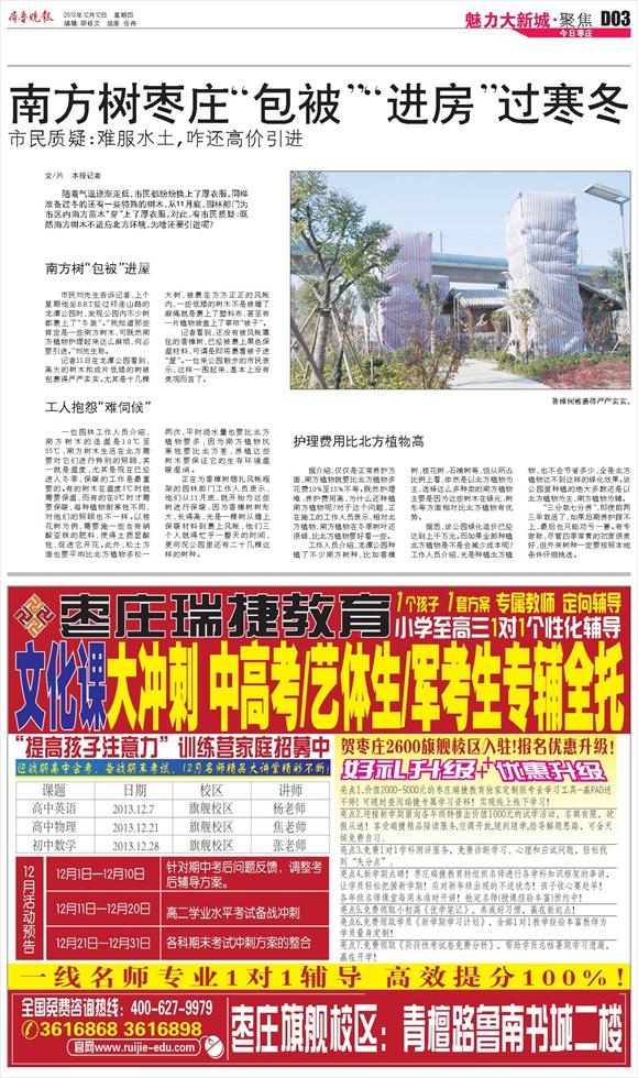 南方树枣庄“包被”“进房”过寒冬