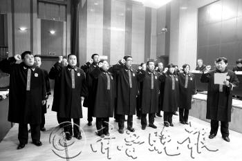 | 17日下午,平阴法院新任命的14名审判长进行宣誓。(平阴法院提供) |