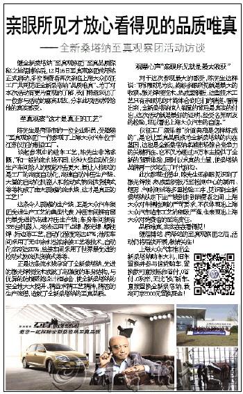 亲眼所见才放心看得见的品质唯真 ——全新桑塔纳至真观察团活动访谈 继全新桑塔纳“至真观察团”至真品质探秘之旅淄博站后,12月16日至真观察团菏泽站正式启动,多位消费者再次亲临上海大众仪征工厂共同见证全新桑塔纳“品质唯真”。为了对本次活动有更为直观的了解,我们特意采访了一位参与活动的嘉宾朋友,分享此项活动带给他的真实感受。 至真观察“这才是真正的工艺” 陈先生是菏泽市的一位企业职员,受邀随“至真观察团”一行参观了上海大众汽车位于江苏仪征的制造工厂。 谈起参观中的造车工艺,陈先生非常感慨,“和一般的流水线不同,这种大型自动化的生产车间给人的视觉冲击更大,最让人惊叹的是工厂的高度自动化,高速自动冲压生产线、大量的自动化机器人和拉动式物流供货模式等等构成了庞大震撼的流水线,这才是真正的工艺!” 这条令人震撼的生产线,正是大众汽车集团先进生产工艺的典型代表,冲压车间拥有国内最先进的高速冲压生产线;车身车间拥有386台机器人,高效运用于点焊、激光焊、螺柱焊、折边等工艺,自动化程度高达47%;油漆车间采用了无中涂水性漆涂装工艺等技术,自动化率高达85%;总装车间采用了世界最先进的拉动式物流供货模式等等。 正是这条流水线孕育了全新桑塔纳,先进的激光焊接技术成就了高强度的车身结构,与优异的防撞吸能设计相结合,使全新桑塔纳的安全性大大提升。精益求精工艺精神,精密的生产流程,造就了全新桑塔纳的至真品质。 观摩心声“亲眼所见就是最大收获” 对于这次参观最大的感受,陈先生这样说:“所谓眼见为实,能够亲眼所见就是最大的收获。激光焊接技术、热成型钢板,这些技术工艺只有亲眼见到才能体会到它们的精湛。看得出来,全新桑塔纳惊人销量的背后是真实的付出,这次活动就是最好的证明。经受各界朋友的检验,足以看出上海大众汽车的自信。” 仪征工厂演绎着“价值典范是怎样炼成的”,是它让至真品质成为全新桑塔纳的内在基因,这也是全新桑塔纳卓越市场综合竞争力的关键所在。它不仅为超过15万车主提供了全新的驾乘体验,同时以求真的力量,使桑塔纳品牌再一次站在了时代前沿。 此次参观过程中,陈先生还亲眼见识到了激光焊接、热成型钢板乃至检测中心的暴雨、烟雾、气味测试等多重检验工序,见识到全新桑塔纳从走下生产线到走到消费者之间,上海大众对车辆检测的严苛要求,不仅体现出上海大众汽车造车工艺的细致严谨,也表现出上海大众对消费者的至高责任。 品质唯真,实实在在看得见! 继淄博站、菏泽站的至真观察团之后,活动仍将后续开展,敬请关注! 上海大众汽车推出全新桑塔纳购车大礼,旧车置换并参与信贷购车,置换款可直接抵作首付,0首付、0利率,无忧“换”新车。直接置换全新桑塔纳,最高可享5000元置换现金!