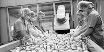 | 安德利果汁股份有限公司的果汁生产线挑选台。 |