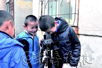 作品描述:看到从未见过的老胶片相机,孩子们十分新奇,纷纷一睹为快。