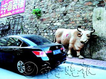 编辑点评:看看这头“下岗”的老牛,靠在墙边怒瞪着小轿车,心里只有“嫉妒恨”了吧。