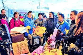 本报徐州12月19日讯(记者 乔显佳) 18日在台湾台东发生车祸的我省15人旅游团,19日晚经徐州顺利返回山东家中。 19日17时30分,14名省内游客在1名领队率领下,携带大包小包步出机场大厅。接机人员为每个家庭送上一束鲜花,还塞给每名成员一个包着200元的“压惊红包”。 在前往高铁徐州站的旅游大巴上,几名游客回忆了18日上午发生的“惊魂一分钟”。旅游车在向右躲避对面驶来的渣土车时,瞬间连续遭遇三次猛烈撞击,先是两车相撞并严重刮擦,紧接着旅游车右前侧撞到右侧山体,之后,车轮陷入路边的一条泄洪沟里,挡住连车带人向山上冲击的势头,帮助满车驾乘人员逃过一劫。 一位济南女游客说,事故发生瞬间,玻璃碴被撞得满车飞,她事后才发现脚部被碎玻璃扎伤。一位老年男游客则被撞断几颗牙齿,是游客中受伤较重的。另一位来自滨州的赵先生,嘴唇内侧被撞得青紫,另有多名游客下肢撞伤。
