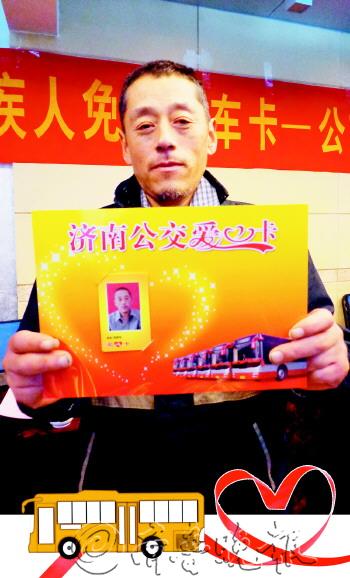 19日,在历下区甸柳社区,95张公交“爱心卡”集中发放到残疾人手中。从明年1月1日起,残疾人持“爱心卡”可免费乘坐180余条市区内全程票价2元以下(含2元K系列及BRT)的公交车。济南市持证残疾人约10万人,此次集中办卡的人数在4万人左右。