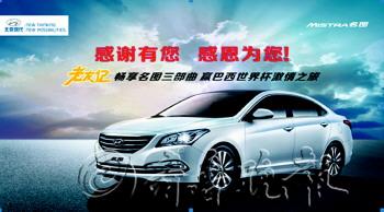 伴随着2013年年销百万辆的目标渐行渐近,北京现代迎来其一系列里程碑式的辉煌,同时也即将迈入“500万辆俱乐部”的行列。完成从0到500万辆的征程,上海大众用了25年,一汽大众用了20年,北京现代则是11年。 我们感谢,是您鉴证我们,十年不断进取之路! 我们感谢,是您信任我们,相伴一生不变承诺! 我们感谢,是您鼓励我们,开启未来再创新篇! 11月19日北京现代倾力打造的一款中高级家轿耀世登场,为感恩500万北京现代新老客户,北京现代特别推出“老友记 畅享名图三部曲”——千元购车礼、千元保养基金、iPadmini、iPhone5S等等豪礼火热派送!更有机会赢得巴西世界杯入场门票,激情之旅为你开启! 活动详情: 1.老友记:老车主发送“老友记邀请函”短彩信给好友,好友凭验证码到店成功购买名图即可享受1000元购车礼金,老车主将获得1000元保养礼金(可累积)。更有机会获得iPhone5S、微软Surface平板电脑、索尼微单等大奖。 2.畅享名图:在线完成拼图游戏并分享给微博好友,可参与抽取LG Pocket Photo口袋相印机大奖。 3.乐享名图:在线预约试驾或订车并完成“名图意中人测试”,即有机会获得微软Surface平板电脑等大奖。 4.分享名图:车主上传名图提车、交车仪式并分享,参与抽LG Pocket Photo口袋相印机大奖。 请登录活动网站:http://club.beijing-hyundai.com.cn/mistra/index.php?ly=bh了解活动详情。 http://event.mistra.beijing-hyundai.com.cn/brazil/赢巴西世界杯激情之旅。 MISTRA名图——北京现代中高级轿车,价格区间覆盖12.98万-18.98万元。 名图采用欧版索纳塔平台,与i40共享底盘,前麦弗逊后多连杆设计,与目前部分同级别车型比整体底盘设计更加扎实,驾乘舒适感更佳。 名图荣获2013年上海车展最受关注车型奖。 名图是前大众首席设计师彼得·希瑞尔的最新设计作品,其代表作奥迪TT,A6,大众甲壳虫,至今无人颠覆其设计理念。 名图配置丰富,四轮独立胎压监测、全景天窗、柔性转向系统、LED日间行车灯和LED组合尾灯、BLUELNK系统等,在这一级别配置最全面,性价比极高。 名图静音效果堪比雷克萨斯ES350,达到国际豪华车静音水平。 名图安全方面表现出色,在最新版CNCAP测试中,取得了57.7的各品牌车型历史最高分。 名图5年10万公里整车保修,远高于国家三包政策,按照2年的延保费用计算,相当于为车主节约至少5000-6000元。 更多详情请咨询北京现代瑞和众达4S店,0531-80951666。