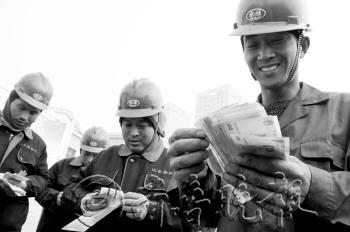 | 农民工喜领工资。 本报记者 张晓科 摄 |