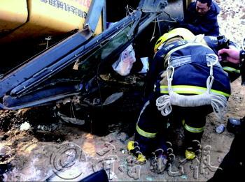 本报12月19日热线消息(记者 王琳 通讯员 杨超)19日上午,一辆压路机在寿光文家街道南潘曲村南边的高架桥上施工时,不慎发生意外翻车,从十米左右高的高架桥上掉落下来,司机被困在驾驶室内不能动弹。 19日上午9点多,寿光大队银海路中队接到报警称,在文家街道南潘曲村南边的高架桥下发生了一起事故,一辆压路机从高架桥上翻车掉下去,司机被困在驾驶室内不能动弹,情况非常紧急。接到报警后,银海路中队马上出动一辆抢险救援车、6名官兵紧急赶往现场。消防官兵赶到现场后发现,一辆巨大的黄色压路机车轮朝天翻躺在高架桥下,司机是一名中年男子,被困在已经变了形的驾驶室内无法动弹,只有头部露在外面,他满脸是血,表情十分痛苦。事故现场周围有几名围观的村民,正在想办法实施救援。 压路机不同于一般的汽车,液压钳很难将其破拆,最好的办法就是动用吊车将压路机吊起,才能将被压司机救出。此时,施工单位已经调来了一辆吊车,可由于压路机过重,吊车在起吊过程中难以掌控压路机的重心,很容易造成压路机侧偏,导致被压司机二次受伤。于是,消防队员又紧急调来一辆吊车,分两头同时将压路机吊起。经过半个多小时紧急救援,最后,被压驾驶室内的司机被顺利救出,并送往医院接受治疗。 据周围村民讲,这个将近10吨重的压路机是从高架桥上掉下来的,桥高10米左右,正在施建中有的地方还未连通。村民推测可能是压路机司机在施工时,没有注意到断裂的地方,意外从桥翻了下去。