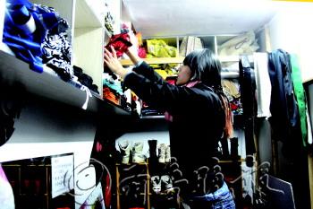 19日,萧何庄内一家演出策划公司的工作人员正在整理演出服装。据介绍,今年大部分企事业单位都放弃了办奢华年会,策划公司的订单也大幅减少。 本报记者 王小会 摄
