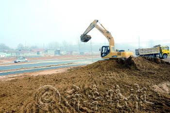 | 长城路西段,施工人员正在进行道路排水管道的挖掘建设。 |  | 以前的长城路西段现已经开始通车。 |