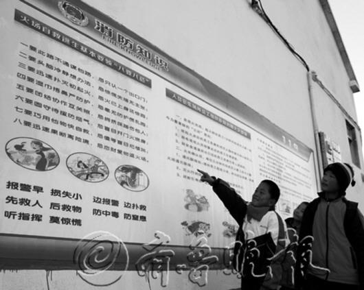 近日,几名放学回家的小学生在西小王乡三座桥村新建的消防知识宣传墙下学习消防知识。近年来,该乡加大“美丽乡村”行动,村村在主街道建起融计生政策、环境整治、二十四孝、消防知识、公民道德为主要内容的文化墙。由于文化墙内容新颖、图文并茂、寓教于乐,受到大家欢迎。