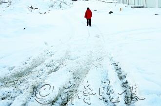 19日,在刘家台村,大雪将通过村子的路道阻断,101路公交车因道路被大雪覆盖而不能进村接送乘客。