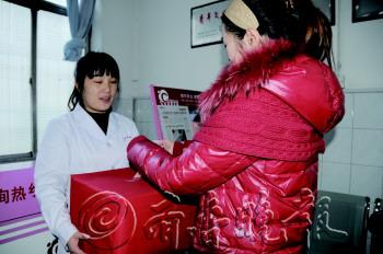 | 山东省脐血库工作人员为白血病女孩小涵募集善款。 本报记者 姜文洁 摄 |