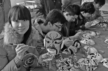聊城大学50余名大学生戏曲爱好者最近举办了一场别开生面的脸谱大赛活动,利用巧手绘制了上百张脸谱,并把绘制的脸谱带在脸上,摆成一面特殊的“脸谱墙”,借此来宣传国粹京剧文化,体验非遗魅力。