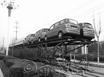 | 在江北汽车城外,停靠着一辆等待卸车的大挂车。 本报记者 张召旭 摄 |