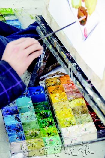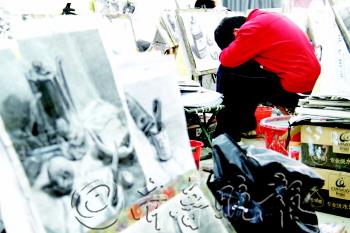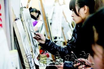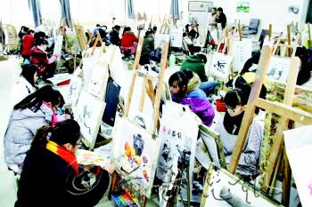 | ▲困了就趴着小睡一会儿。 |  | ▲画室内学生们正在忙着画画。 |  | |  | ◥画室内,一名女生正在专心致志地画画。