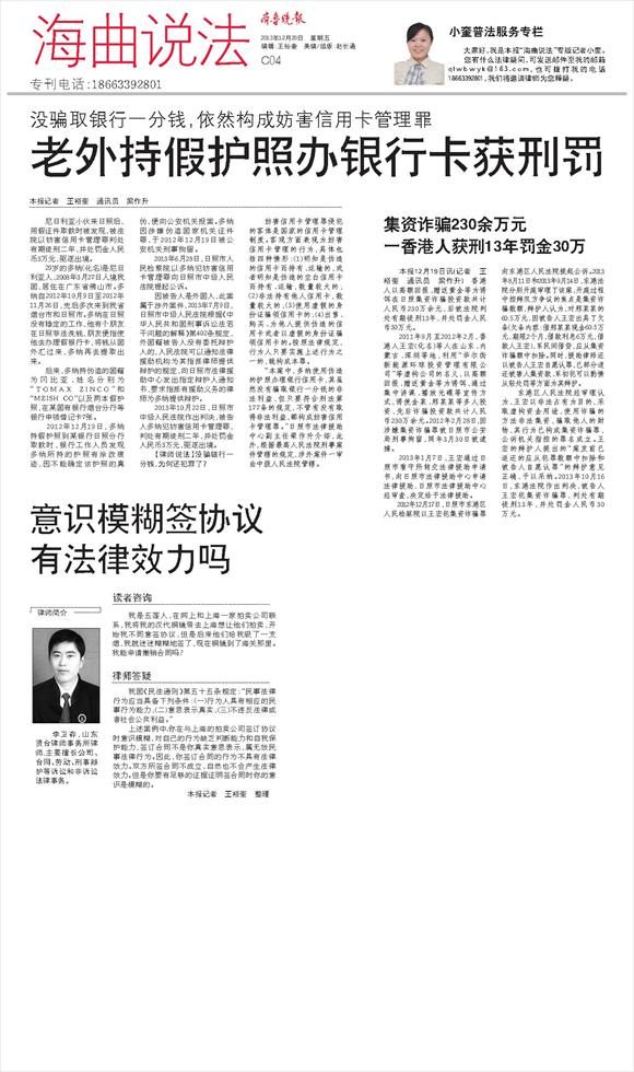 集资诈骗230余万元一香港人获刑13年罚金30万