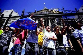 | ◥12月13日,阿根廷首都布宜诺斯艾利斯市国会大门前,数百名华侨华人打出横幅标语,呼吁阿政府关注华侨华人的生命财产安全。 |  | 遭遇哄抢后的华人超市。 |