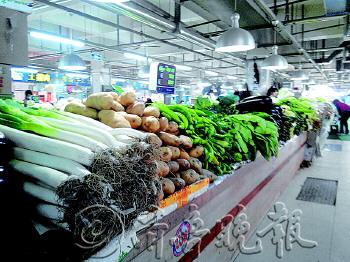 见习记者 王皇 摄 |  | ◥综合市场往南400多米处的棋盘菜市场菜品齐全,生意不错。