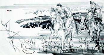 赵初凡:用艺术表现不畏艰险的英雄意志 ●赵初凡 1964年生于潍坊,毕业于解放军艺术学院美术系中国画专业,中国美术家协会会员,现为解放军总参美术创作院艺术委员。 山/快马加鞭未下鞍/惊回首,离天三尺三/山/倒海翻江卷巨澜/奔腾急/万马战犹酣/山/刺破青天锷未残/天欲堕/赖以拄其间 这首《十六字令》三首,是毛泽东同志在1934年—1935年创作的诗词,这首诗词的创作背景是在第五次反围剿失败后,中央红军主力被迫从江西中央苏区战略转移,途径广东、湖南、广西、贵州、四川、云南、西康、甘肃、陕西九个省,历时一年,行程两万五千里,战胜了恶劣的自然环境,克服了各种艰难困苦,冲破了数十万国民党军的围追堵截,长征的艰难险阻、危险多变和翻越的大大小小数不胜数的高山险峰,极大地触发了毛泽东的创作灵感,也为毛泽东诗词的创作提供了丰富的素材。 《十六字令》这种令牌形式,是只有16个字的小令,篇幅短窄,没有回旋余地,历史上佳作很少。然而,毛泽东的《十六字令》是在他戎马倥偬的长征途中抽空所写,并经过长时间的酝酿、修改和润色才定稿的,十分出色。他先以雄伟简劲的笔触,描绘了莽莽群山的奇特形象。每一首各有独特的意境,合起来又构成了一幅完整的雄伟的画面,奇情壮采,词约义丰。 在这幅水墨写意作品中,我把毛泽东这首词的写作背景和他在山的形象上所寄寓的英雄豪情结合了起来,也保持住了我画面中比较注重的笔墨结构和水墨趣味,有鲜明的时代特征。近处我描写了两位策马奔腾的男子和两匹意气风发的战马,远处是高原上的高山,气势磅礴,意象峥嵘,用艺术传达了在艰难险阻的环境下,人们要“快马加鞭未下鞍”,一心想要征服高山、战胜困难的不屈意志,不畏艰险的革命英雄主义和乐观主义精神,这种精神在当下压力重重的社会生活中仍然有着十分重要的意义。