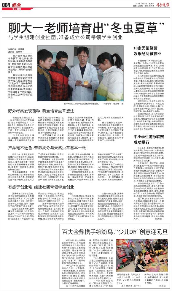聊大一老师培育出“冬虫夏草”