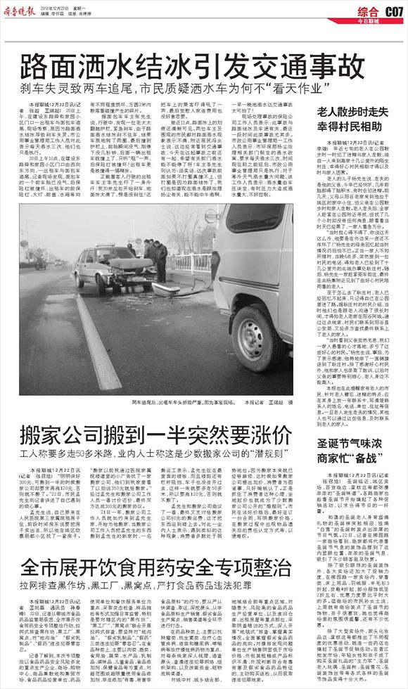 路面洒水结冰引发交通事故
