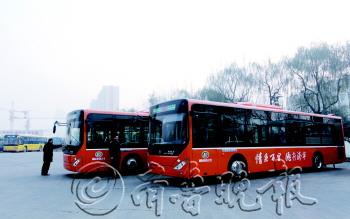 本报济宁12月23日讯(记者 庄子帆 通讯员 秦明) 23日,记者从济宁交运集团了解到,24辆济宁汽车北站至曲阜高铁站的快速公交专用车已经抵达济宁,目前正在进行挂牌,安装报站、监控等设备,本月底就将开始运营。 经过7、8个小时的车程,22日凌晨,24辆快速公交专用车陆续从聊城到达济宁。23日上午10点左右,记者见到了这24辆即将上岗的电气混合新能源公交车,车身为明快的橘色,全长12米,车头的LED屏上“济宁北站B1曲阜高铁站”的字样已经亮起,右侧车体也有类似的LED屏提示。从外观上来看,除了颜色之外,与正在运行的城际公交车基本类似。 不过,车内的空间和设计与普通车大有不同。记者登上其中一辆车,明显地感觉到车内的空间较大,共有34个座位,其中4个座位是老幼病残孕专座,此外,正对后门方向的区域还有两个残疾人专用座位。“这种座椅能将残疾人固定在座位上,保障他们的安全。”济宁交运集团机务处副处长王斌说,原本这块区域是两排座椅,考虑到去高铁站的不少乘客都携带行李,在没有残疾人使用时,这个区域也可以专门放行李。 “车内安装了空调,考虑到春秋季节时可以通风,车身并不是全封闭设计,窗户可以打开。”王斌介绍,快速公交专用车的底盘比普通的公交车要低,大约离地30公分,时速将控制在70公里/小时以内。车高为3.26米,车内的空间较大,能够容纳89人左右。同时,该车安装了空气悬架,起到了很好的减震作用。“我们还将在车内安装电子导乘牌,到达固定站点时,对应的灯就会亮起。”王斌说,目前正在安装电子报站器、卫星定位、3G车载视频监控系统等设备,本月底该条线路将正式开通。