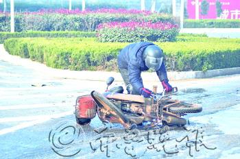23日,泰安路与菏泽路路口附近一污水井盖冒水,导致路面结冰,给行人出行带来不便,一摩托车车主经此处时摔了跟头。据了解,21日该处就出现过冒水现象。日照市排水管理处一工作人员称,可能与附近工地乱排水至污水管道有关。