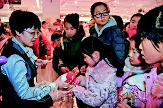 记者 王震 摄 |  | ◥乐天百货工作人员给小记者赠送小礼品。