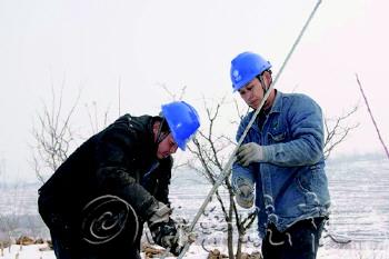 本报讯 21日,国网沂源供电公司唐山供电所彩虹共产党员服务队为确保用电可靠性,对供电线路进行了雪后特殊巡视。