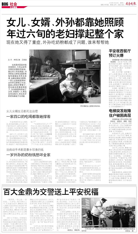 女儿、女婿、外孙都靠她照顾年过六旬的老妇撑起整个家