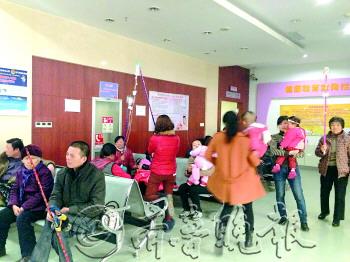 “候诊区里又没有吊瓶架,我们就在医院门口花4块钱买了根晾衣杆,把输液袋挂在上面,这样举起来也轻松一些。”25日,济南市妇幼保健院儿科候诊区,带孩子前来就医的李阳这样告诉记者。当天,该院儿科输液区,先后约有400名患儿接受输液治疗。输液区内人满为患,怀抱患儿的家长们只好自寻空处,让孩子接受输液。 连日来,反复升降的气温和持续的雾霾天气,让儿科门诊的日均门诊量大增。 本报见习记者 陈晓丽 候诊俩小时,终于进诊室 当天早上8点半,张大爷和张大妈就带着7岁的小孙子来到了济南市妇幼保健院。此时,该院的儿科门诊挂号处已经挤满了患儿家属。 “孩子爸妈都要上班,我们老两口闲着在家,就不让他们再请假了。”张大爷拿到号后,就和老伴一起坐在候诊区里照看孙子。孩子不断的咳嗽声,让两位老人更显焦急。周围的座椅上,都是孩子和家长。一些孩子因为身体不舒服哭闹个不停,父母哄来哄去没什么办法,纷纷给孩子买氢气球玩具或用手机放儿歌等方法,试图转移孩子的注意力。 张大爷拿起杯子去接了杯热水,过几分钟就让孩子喝上几口,“孩子咳得嗓子都沙哑了,得多喝水。”一直到10点多,广播里终于喊到了自家孩子的名字,张大爷和张大妈急忙带孩子去了诊室。 从诊室出来,又开始排队拿药扎针,一直到11点多,两位老人终于在输液大厅安稳下来。“医生说孩子是感冒引起的咳嗽,嗓子发炎,让先挂3天的吊瓶看看情况。”而输液大厅的人比候诊区的人更多更拥挤,张大爷左看右看好不容易才找到一个座位。 自买晾衣杆,代替吊瓶架 李阳的女儿刚满8个月,这几天一直咳嗽个不停,夜里总是醒。来医院后,医生也建议挂吊瓶。和李阳一起来医院的是孩子的奶奶,今年已经快70岁了。 因为输液大厅里已经找不到位置了,李阳就抱着孩子在儿科候诊区找了俩座位,和孩子奶奶一起坐下来。“候诊区里又没有吊瓶架,我们就在医院门口花4块钱买了根晾衣杆,把输液袋挂在上面,这样举起来也轻松一些。” 环顾四周,候诊区里不少家长都已经准备了晾衣杆。旁边同样举着晾衣杆的刘丽也说道:“虽然不如吊瓶架省事儿,不过也还挺方便。孩子嫌闷的时候,可以带他到外面大厅里走走。” 这时,有护士过来了,对家长们说道:“这里是候诊区,规定不能在这里输液,输液的孩子都去输液大厅吧。”李阳答应着却没有挪动地方。另一位孩子的父亲着急又生气地对护士说道:“输液大厅满满的没位置坐,我们过去后怎么办?” 日均400患儿输液,增加约一倍 输液大厅里,两名巡回护士正忙得没有片刻休息。“护士,快过来帮忙看一下,我女儿说扎针得手疼,是不是因为吊瓶滴得有点快啊?”巡回护士赶紧过去看看是什么问题,另一位家长也过来了,“我孩子的药水马上滴完了,帮忙拔针吧。”输液大厅里已经快装满两个大桶的废弃输液袋,也说明了护士的工作量。 “从10月底开始,因为天气慢慢变冷,再加上雾霾比较严重,我们这边就特别忙。”济南市妇幼保健院急诊科护士长刘志红告诉记者,“这一段时间,一天下来只是输液的孩子就要超过400个,差不多是以前的两倍,其中大部分孩子都是呼吸系统疾病。” 中午12点半,护士们还在忙碌着。“现在我们几乎是每天中午都要加班。”刘志红无奈地说道,“基本都要忙到下午1点多,吃饭的时候饭菜都凉了。” 而让刘志红和她的同事寒心的并不是忙碌的工作,“一些家长因为孩子生病着急,就对我们医护人员发火。如果护士扎针的时候一针没扎好,或者孩子手上鼓包了,经常被投诉,前一阵我们一个护士就被家长打了。因此我们也希望家长能和我们互相理解。”