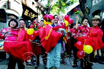 周村古商城景区每年都会举办“民俗婚礼”活动(资料片)。 本报记者 王鸿哲 摄