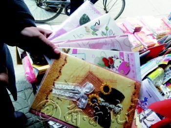 | 在健康街一家店铺内,店主展示店内的明信片。 本报记者 王欣 摄 |