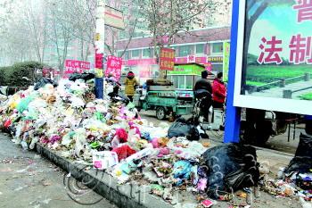 | 垃圾堆在站牌处,发出阵阵异味。 本报见习记者 王富军 摄 |