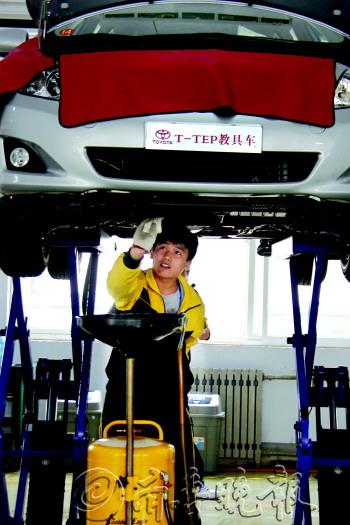 图为9月26日上午,在德州交通职业中专内,学生在进行汽车机电维修项目的比拼。        本报记者 王小会 摄(资料图)