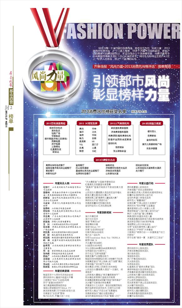 2013消费风尚榜获奖名单 (排名不分先后)