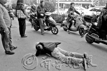 | 11月26日早高峰,浙江金华一非机动车道上,一位老人突然摔倒,怎么也爬不起来。来往行人和车辆很多,但谁也不敢上前扶起老人。最终,大家选择围出一个“安全岛”,等救护车到来。 |