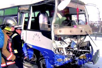 雪天路滑大客失控追尾