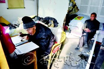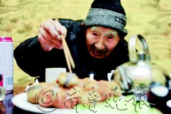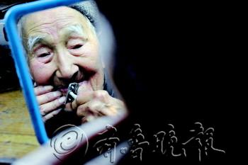 | 12月28日,100岁的温连三蹬着三轮车慢悠悠地在鄄城县城里遛弯,邻居停下车跟他打招呼。 |  | ▲温连三老人闲暇时就趴在小写字桌前写写字、看看书。 |  | ◤对着镜子刮刮胡子,立刻年轻了不少。 |  | 温连三从不挑食。 |