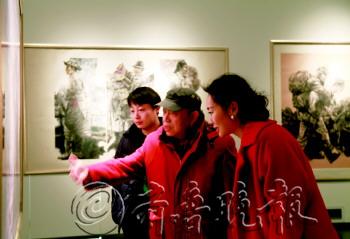 | 观摩会上,参展艺术家热情地为观众讲解作品 |