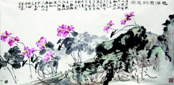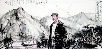 毛泽东诗词创作笔会近期于齐鲁晚报美术馆举办 为庆祝毛泽东诞辰120周年,近期,我省15位著名艺术家相聚齐鲁晚报美术馆,缅怀伟人事迹,品读伟人诗歌,并合作完成了《伟人毛泽东》、《清平乐》、《毛泽东词意图》、《云山清赏》等七幅作品。这些作品有的以毛泽东诗意为题,有的咏颂先辈革命精神,有的展示出自己的代表性题材,山水、花鸟、人物俱全,十分精彩。 在众多作品中,由张志民题字,陈全胜、杨枫、刘书军共同合作的《伟人毛泽东》,描绘了革命时期毛泽东的戎装形象,陈全胜画远山,杨枫画青松,铺陈出大气象;刘书军所画的人物形象立于山上,画面下方依稀有行军队列与主体人物遥相呼应。主席深邃的眼神与坚定的气质与布景相互衬托,最后张志民题:“雄关漫道真如铁,而今迈步从头越,”成为点睛之笔。 由曾昭明、杨枫合作,李勇题词的作品《毛泽东词义图》中,杨枫于画面右下方起石,勾草点苔,曾昭明的荷花追求清新富丽的视觉效果,设色十分讲究。据考证,所题这首《虞美人》是毛泽东写给妻子杨开慧的,而画中亭亭玉立、不蔓不枝的荷花,恰好描绘出了革命烈士杨开慧的气质。 而山东艺术学院两位教授梁文博、王小晖合作的作品,则以紫藤仕女为题材,以毛泽东《清平乐》“东方欲晓,莫道君行早。踏遍青山人未老,风景这边独好”点题,刻画了花架下三位女知识分子形象。紫藤清雅,佳人清丽,女知识分子身着旗袍,鼻架眼镜,既符合了当时的服装特征,又赋予了独特的艺术发挥。 “天高云淡,望断南飞雁。不到长城非好汉,屈指行程二万。六盘山上高峰,红旗漫卷西风。今日长缨在手,何时缚住苍龙?”由刘书军、张宏伟共同合作的山水画作品,首先展现给人们的是博大的气势,两位艺术家用心经营,远山缭绕,近山葱郁,石阶上隐有行军队伍,意气风发,红旗漫卷,凸显出锐不可当的气势,与山体雄峙的氛围融为一体,凸显出主题。 张宝珠、李承志在山水作品中,远山于飘渺云间若隐若现、水墨氤氲,近山笔法劲健、气势磅礴,体现了毛泽东诗词“暮色苍茫看劲松”、“乱云飞渡仍从容”、“无限风光在险峰”的意趣,既蕴含了山水文化的传统积淀,又体现了浓厚的时代气息。 尹延新在他的写意荷花中,色彩的运用既恰到好处,又突出了荷花的神韵。笔法的豪迈与小处的严谨,使色彩在水墨中灵动,并成为他传情达意的重要手段,从而使写意荷花变得风情万种。看到他的作品,不禁使人想起“四面荷花三面柳,一城山色半城湖”的意境。 而山水、罗汉组合的《云山清赏》,是徐永生、常朝晖两位艺术家的合作精品。徐永生善画罗汉,常朝晖善绘山水,罗汉空山论道,石木静谧幽然。其中,徐永生的罗汉展现出其以线写形的深厚功底,人物以及衣饰的线条繁复流畅,气韵畅通,凝炼入神;而常朝晖的山水体现出其擅长的积墨设色,运笔造境率性而为,浑厚华滋,浑茫深邃。二者呼应相融,禅意汩汩而出。 (东野升珍)