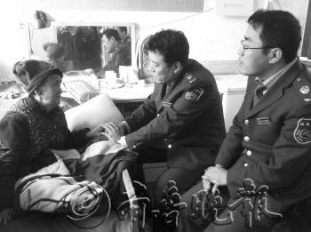 27日上午,山东高速集团威海分公司烟台收费站站长曹庆平带领工作人员来到莱山区孔家滩村看望80岁的老人曹常美。曹大娘眼睛不太好,前阵子摔了一跤,现在不能走路,家里只有儿子照顾。曹站长一行人为她带去米面油牛奶、排骨等物品,并承诺以后定期看望曹大娘。