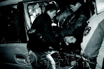 28日,在开发区王台镇洋河崖大桥处,开发区消防战士正在紧急救援被困司机。当天23时22分,一辆面包车与前方一辆罐车在此处发生追尾,事故造成面包车车头受损严重,司机双腿受伤,被困驾驶室内。