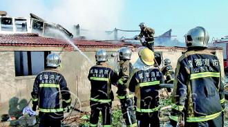 28日上午8时许,文登宋村镇一养猪大棚失火,文登消防龙山中队紧急赶到时,大棚正猛烈燃烧,附近的塑料大棚将被殃及。消防员历时20多分钟,才控制住火情,但大火烧死近百只猪,损失近10万余元。 通讯员 王德圣 摄