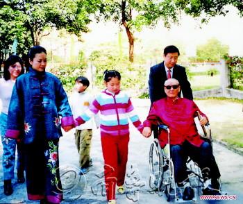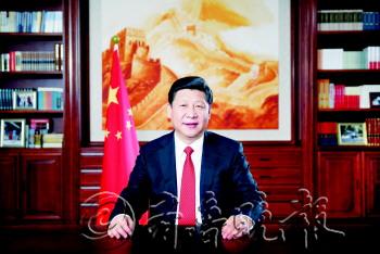2013年12月31日,国家主席习近平发表新年贺词,其办公室也首度曝光。通过央视视频可以看到,习近平办公室背景是一幅长城画作,办公桌上有三部电话(二红一白),身后的书架上摆放了四幅照片,分别是:(1)他与家人推着轮椅上的父亲。(2)他与夫人合影。(3)他骑着自行车载着女儿。(4)他牵母亲的手散步。视频还显示,右侧书架上是一张他踢足球的照片。 新华社发