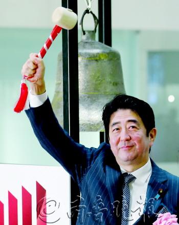 | ◥2013年12月30日下午,安倍晋三出席东京证券交易所“大纳会”,敲钟宣布交易结束。
